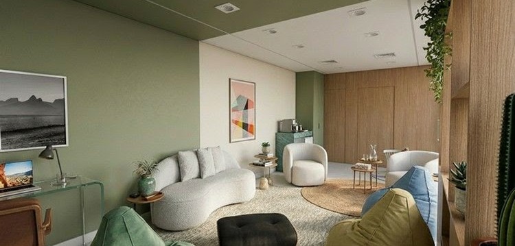 O projeto equilibra cores suaves, formas orgânicas e elementos lúdicos para criar um ambiente seguro, onde crianças e adolescentes se sintam à vontade para se expressar.