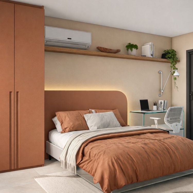 A organização inteligente, aliada a materiais atemporais e soluções funcionais, cria um ambiente fluido, onde estética e uso caminham juntos. Mais do que um espaço de estadia, é uma experiência bem resolvida — simples, eficiente e memorável.
